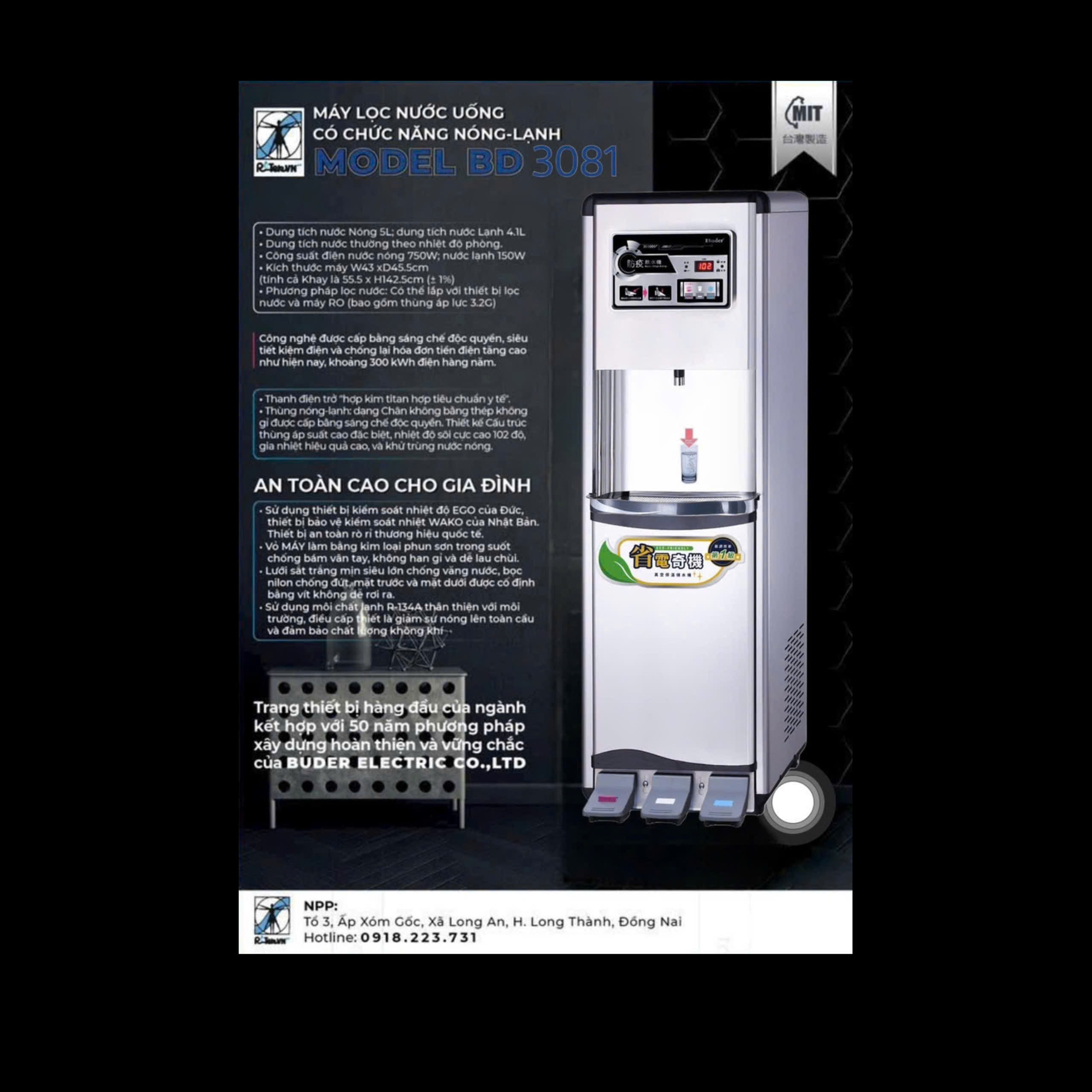 Máy lọc nước BD3081 Thích hợp sử dụng cho Văn phòng và nhà xưởng, Vỏ MÁY làm bằng kim loại phun sơn trong suốt chống bám vân tay, không han gỉ và dễ lau chùi.