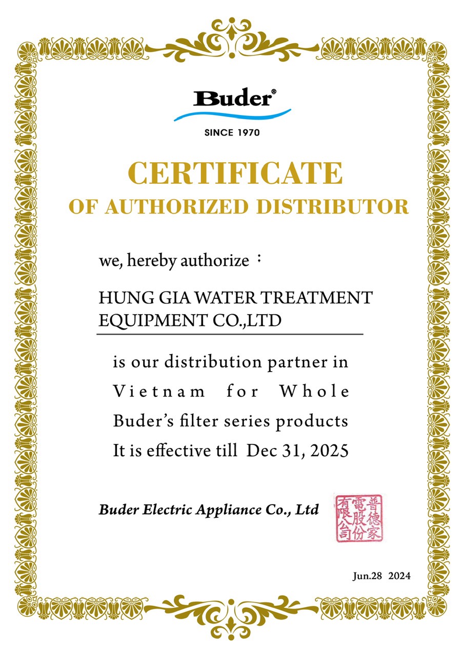 HUNG GIA WATER TREATMENT AND EQUIPMENT Được danh dự nhập khẩu và bán hàng tai Việt Nam cho các dòng sản phẩm máy lọc và cung cấp nước nóng -lạnh thương hiệu Buder gần 2 thập kỹ qua.
